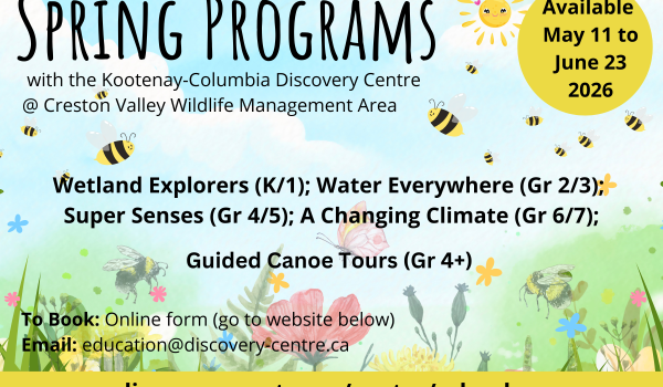 School programs at the Creston Valley Wildlife Management Area are available for elementary and high school students. Programming for preschool and post secondary students is available upon request.